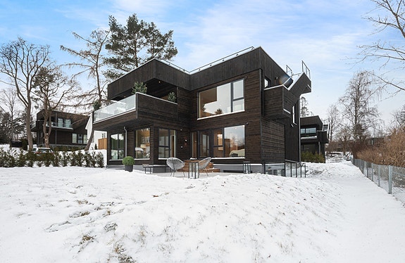 Flott enebolig over tre plan med nydelig utsikt | Idyllisk uteområde med terrasse og hage | Garasje | El-lader