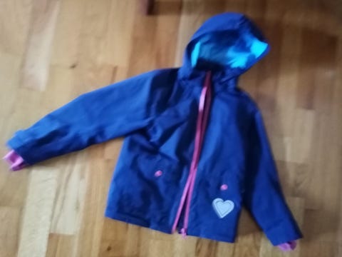 Mellomblå jakke m.rosa knapper og glidlås H& M, hette str. 122/6-7 år kr. 100