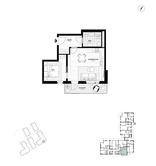 Bruksareal per etasje: Entré, soverom, stue/kjøkken og bad.
