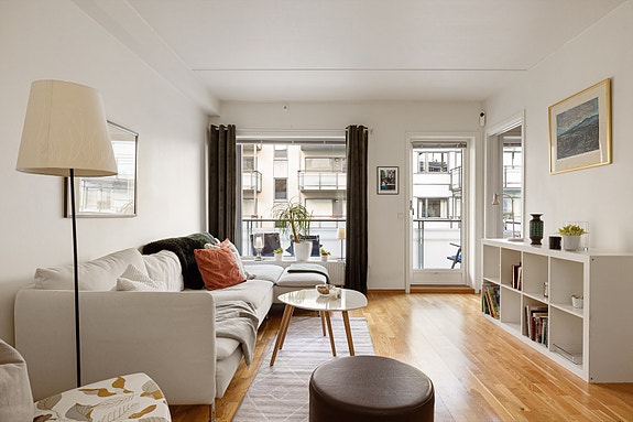 Velkommen til en lys, luftig og gjennomgående 2-roms selveierleilighet beliggende i byggets 5. etasje med heis. Boligen har både særdeles god beliggenhet og intern beliggenhet, med balkong mot sjarmerende gårdsplass og soverom mot indre gård.
