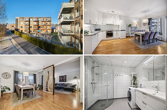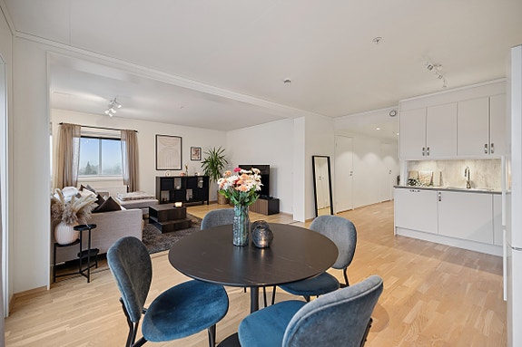 LånekalkulatorModerne 3-roms leilighet fra 2016, beliggende i 2. etasje med sentral plassering. Leiligheten fremstår lys og innbydende, med gjennomgående lyse farger og en praktisk planløsning. Stue og kjøkken har åpen løsning med utgang til balkong, perfekt for lys og luft. Oppvarming skjer via radiatorer tilknyttet fjernvarme, som gir en behagelig varme året rundt. Balkongen er overbygd og har levegger som gir skjerming mot naboer.