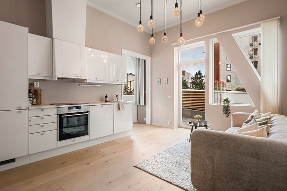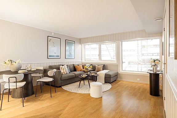 Damsgård - Hjørneleilighet i Damsgårdssundet! 3,3m takhøyde! Moderne overflater. Privat uteplass på 14m².Må sees!