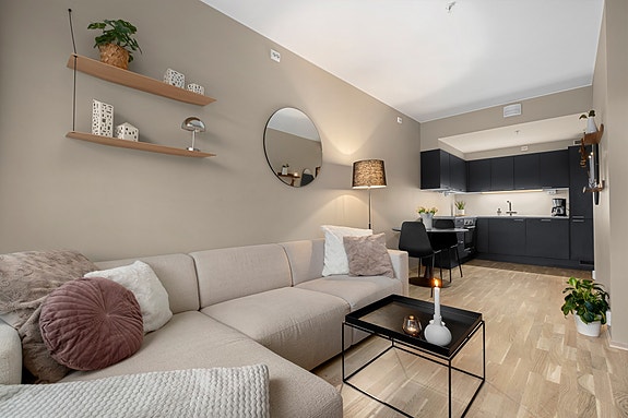 Kvadratmeterpris tilsvarer prisantydning pluss fellesgjeld per kvadratmeter (p-rom eller BRA-i). Prisene i grafen er avrundet til nærmeste 1000 kr.