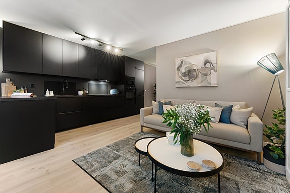Leiligheten i 3. etasje har en effektiv og god planløsning med rom som er enkle å møblere. Fra stuen er det utgang til den sydvendte balkongen som var ny i 2020. Balkongen vender mot svært pent opparbeidet og grønn bakgård. Det moderne kjøkkenet er fra 2021 med lekker innredning og integrerte hvitevarer.