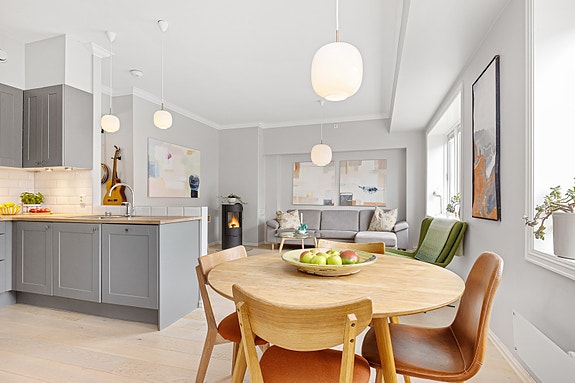Stilren, innflytningsklar bygårdsleilighet midt i idylliske Drøbak! Renovert i 2016/2021 og fremstår moderne med god takhøyde, store vindusflater og gjennomtenkt planløsning. Stue og kjøkken i åpen løsning med lekkert grått HTH-kjøkken og peis som gir lun atmosfære. Leiligheten har i dag 3 soverom, hvorav ett stort rom er delt i to. Delikat, romslig bad og garderoberom med plass til vaskemaskin/tørketrommel. Balansert ventilasjon. Leiligheten ligger i 2. etasje med utsyn over byens handlegate. Bod i felles kjeller og 2 p-plasser i bakgården, én med elbillader. Sameiet har en flott, solrik felles uteplass m/møbler og grill for beboernes bruk. Midt i sentrum, nær kaféer, butikker og strand.