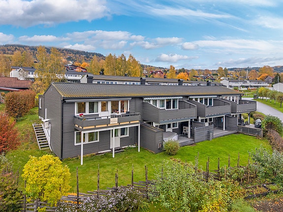 Attraktivt beliggende rekkehus m/nyere kjøkken og 2 soverom, innredet rom. Garasjeplass. Barnevennlig og rolig strøk.