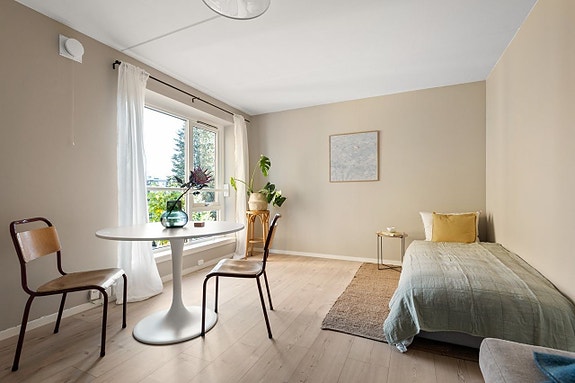 Denne ettroms-leiligheten ligger stille mot bakgård. Et stort vindu gir masse lys og utsikt mot Grefsenkollen.