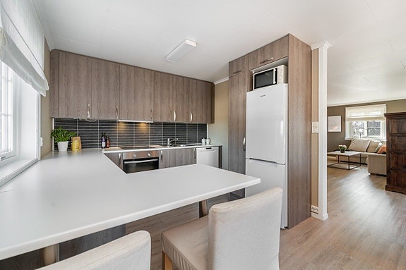 - Moderne innredning fra Aubo med integrerte hvitevarer (løst kombiskap).