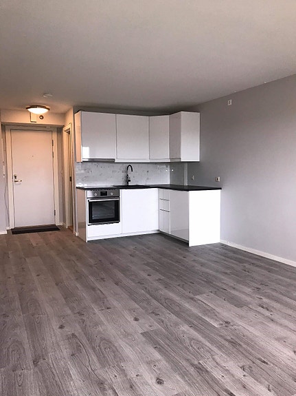 Enkel hybel til leie. Hvitevarer medfølger. Varmekabler i gulv stue, kjøkken og bad.