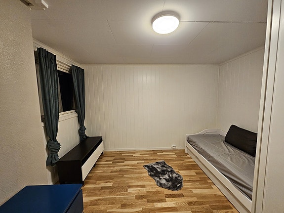 The dormitory is on the ground floor of a detached house, and the bathroom and kitchen are shared with one other tennant. Simple and nice room, similar condition in the kitchen and bathroom. Smoking or pets not allowed. Expenses for electricity and internet included. Furnished with desk, bed, wardrobe and 2-seater sofa. No parking on the property.