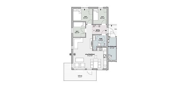 Det vil også være mulig med terskelfri inngang fra stuen og ut til terrassen, i alle boligene som ligger på bakkenivå.