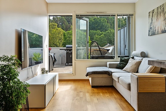 - Stor terrasse på 15,5 m² med flott utsikt og gode solforhold