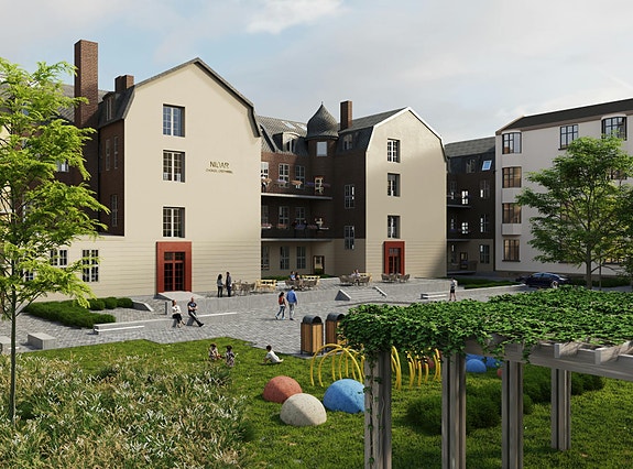 Hyggelig og sentral leilighet med balkong mot skjermet gårdsrom.