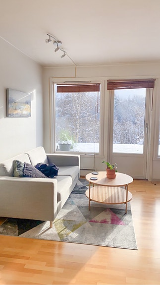 Leiligheten ligger i Olderdalen, nære skogen og relativt kort avstand til sjø (Hansbakkfjæra) og vann (Nydammen). Tidlig vår og fint nabolag.