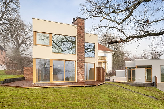 Velkommen til en helt spesiell opplevelse i Melkeveien 15! - Adkomsten til eiendommen via privat og lukket port, gir følelsen av eleganse og kvalitet.