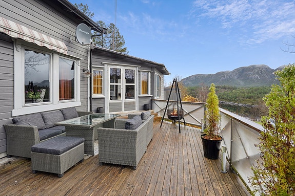 PEN & TILTALENDE FRITIDSEIENDOM I VAKRE FEVÅG. Stor tomt på 1100 kvm. Pene uteområder. Oppgradert fasade (2025).