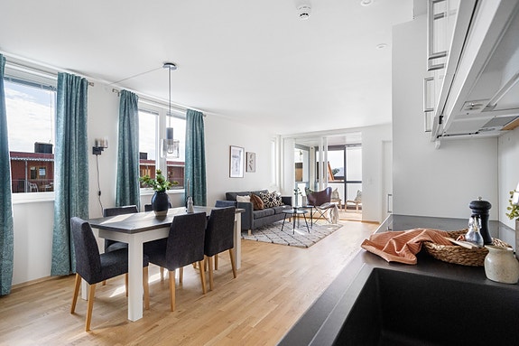 - Åpen stue/kjøkken-løsning med utgang til hyggelig innglasset balkong
