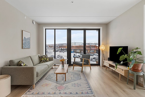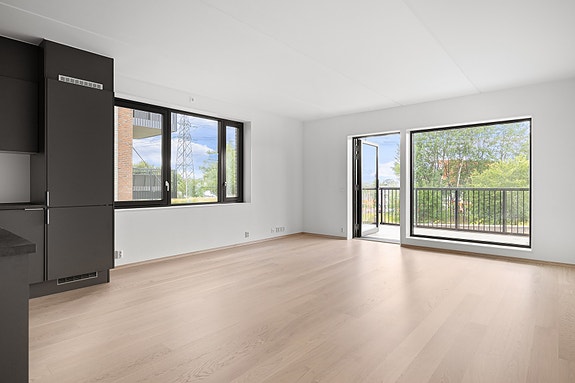 En lys og meget pen 2-roms med stor balkong i moderne bygg fra 2021.