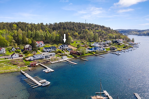 Eiendommen ligger på Kjøpmannskjær rett ved Vrengen brua til Tjøme !