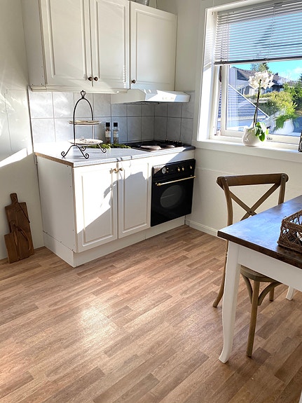 Komfyr følger med (kan også følge med kjøleskap m/fryser om ønskelig.