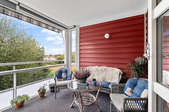 RIDABU - Lys og lettstelt 2-roms andelsleilighet. Innglasset balkong. Klausulert for 60 år / trygdede.