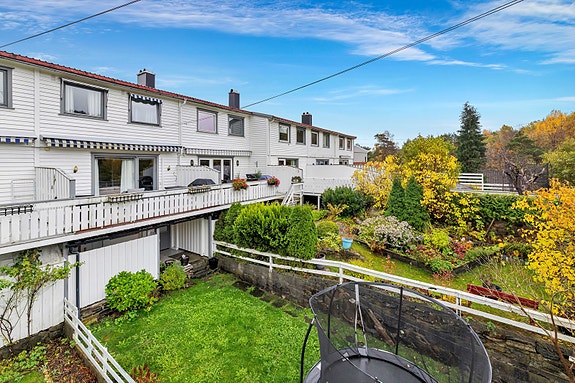 Flott oppusset del av en tomannsbolig med stor usjenert og solrik hage.