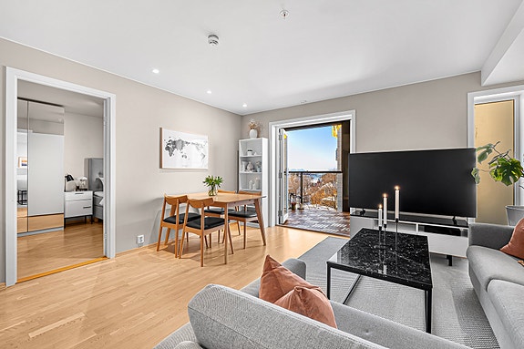 Leiligheten består av romslig og møbleringsvennlig stue med utgang til vestvendt balkong med gode solforhold. Eldre vedovn i stuen og godt naturlig lys fra store vindusflater. Kjøkken i eget rom med spiseplass, bad med plass for vaskemaskin og 2 soverom av god størrelse.