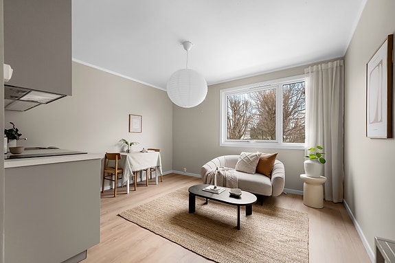 Leiligheten er et oppussingsobjekt med arealeffektiv planløsning og stort potensial. Oppholdsrommet har en åpen løsning til kjøkkenet, det er plass til sofa/sengeløsning og ønsket møblement. Enkel kjøkkeninnredning, flislagt bad og entré med garderobeløsning. Leiligheten disponerer en bod i kjeller, samt fellesvaskeri. Perfekt mulighet til å komme seg inn på boligmarkedet!