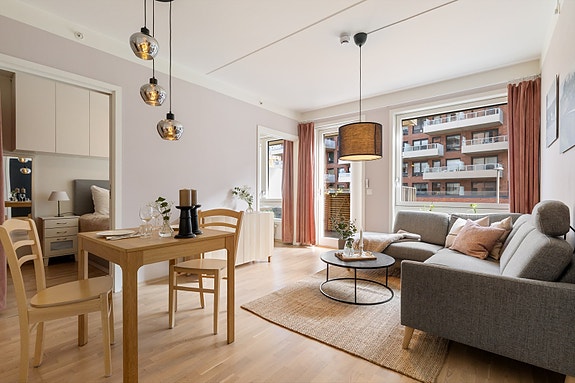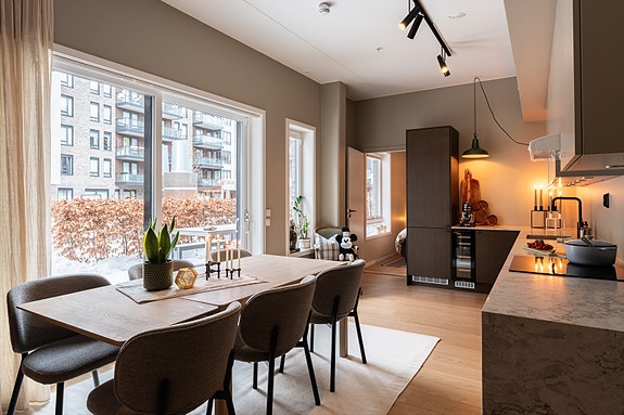 Velkommen til en moderne og smakfull 4-roms, i et attraktivt og familievennlig område på Ensjø. Leiligheten har en gjennomgående og fin planløsning, med store vindusflater som bidrar til gode innvendige lysforhold og en luftig romfølelse. Bygget er fra 2016 og leiligheten holder en generelt høy standard. Herlig terrasse på ca. 11m² med vannspeil ved stuen og balkong ved hovedsoverommet.