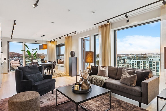 Kvadratmeterpris tilsvarer prisantydning pluss fellesgjeld per kvadratmeter (p-rom eller BRA-i). Prisene i grafen er avrundet til nærmeste 1000 kr.