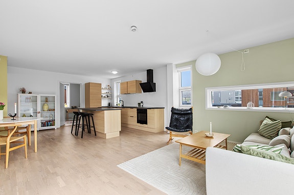 Kvadratmeterpris tilsvarer prisantydning pluss fellesgjeld per kvadratmeter (p-rom eller BRA-i). Prisene i grafen er avrundet til nærmeste 1000 kr.