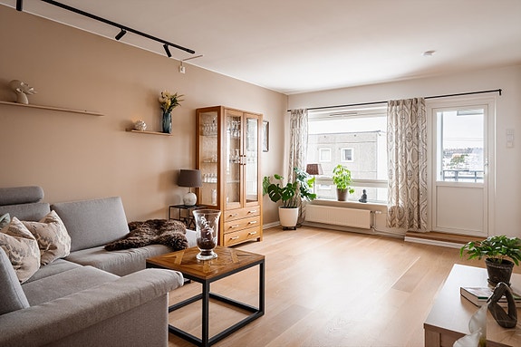 En lekker, lys og arealeffektiv 4-roms selveierleilighet med solrik terrasse og garasjeplass.