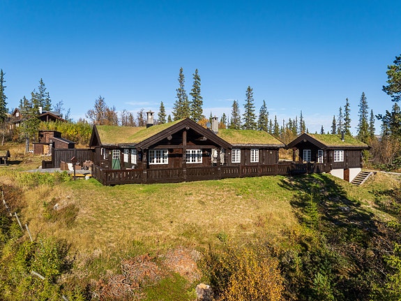Innholdsrik hytte med loft og anneks - Flotte utearealer - Panoramautsikt og særs gode solforhold