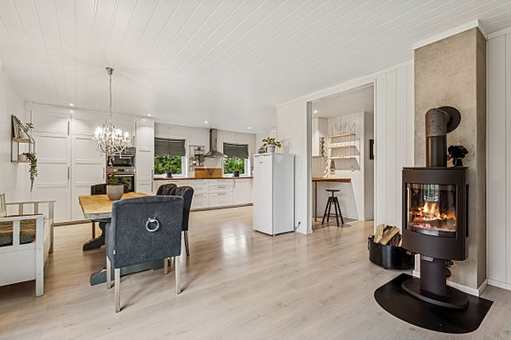 I loftsetasjen finner du fire soverom, bad, separat toalett og vaskerom. Hovedetasjen har blant annet et romslig kjøkken og to stuer, hvorav den ene har utgang til en stor, overbygd terrasse. Kjøkkeninnredning fra 2010. Boligen ble utvendig behandlet i 2021.