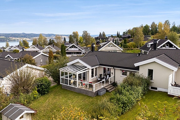- Solrik terrasseplatting mot vest med kveldssol, samt innglasset hagestue