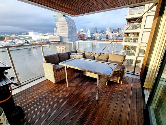 Alt du trenger ligger i umiddelbar nærhet: Meny og Vinmonopolet i bygget, samt et yrende Bjørvika med Deichman, Munchmuseet, Operahuset og havnepromenaden rett utenfor døren. Sørenga sjøbad, restauranter og kafeer ligger kun en kort spasertur unna. Utmerket kollektivforbindelse med Oslo S og Bjørvika holdeplass i gangavstand.