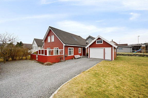Flott plassert på enden grenser tomten til et friområde, og boligen har god takhøyde og fin utsikt fra alle vinduer. Turmulighetene er mange, og en ny barneskole ligger i umiddelbar nærhet. Som samlingssted har boligen en lys stue i delvis åpen løsning med kjøkkenet. Kjøkkenet byr på integrerte hvitevarer og mye oppbevaring. Det følger med egen carport, oppgradert med elbillader.