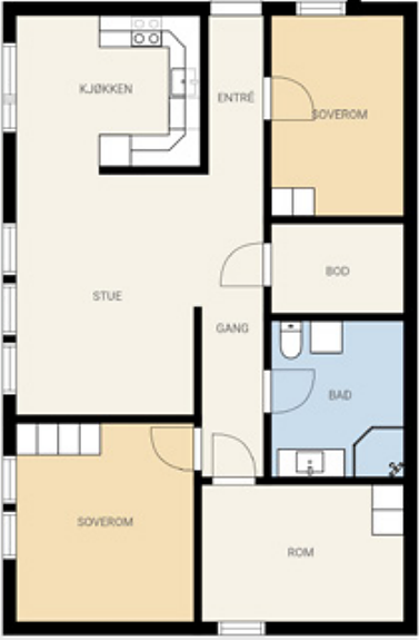 * 2 store soverom, der det ene soverommet har et stort garderobeskap.