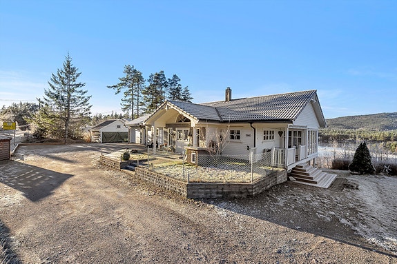 Eiendommen har en romslig innkjørsel med ny grus, som gir både et ryddig og velstelt førsteinntrykk.