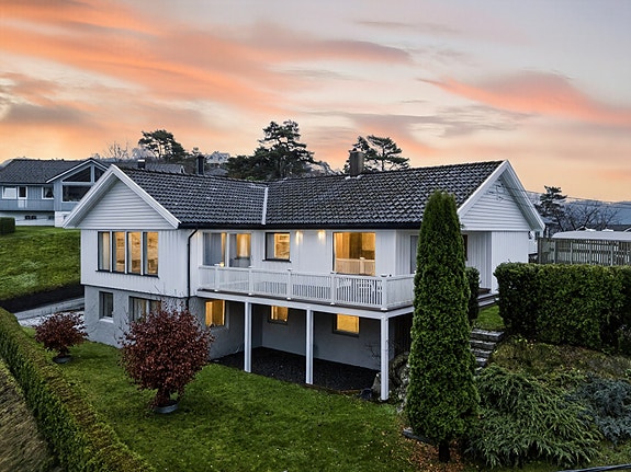 Velkommen til vestre Høylandsvei 37 – en innbydende og gjennomført enebolig som byr på både komfort, lys og gode løsninger!