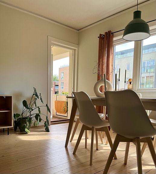 - Stue: Lys og romslig stue med god plass til både sofa og spisebord.