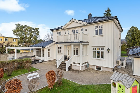 Enebolig på Frogner med flott utsikt over Gjerpensdalen. Tre sov, parkering, vinterhage og egen inngang til underetasje