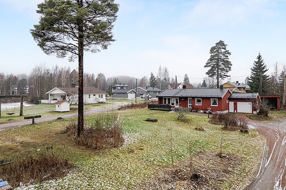 Trivelig bolig med alt på ei flate, tre soverom og hjørnetomt med god beliggenhet på Sønsterud - Garasje og carport