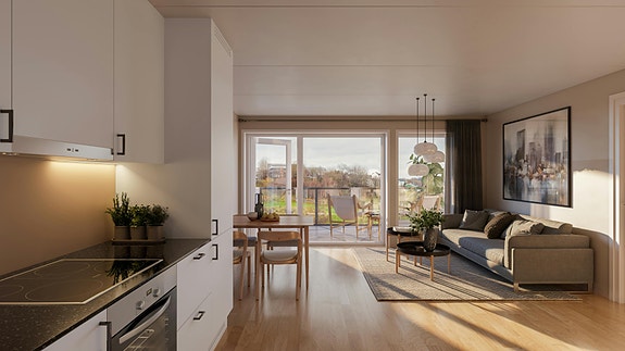 - Åpen stue/kjøkkenløsning på ca. 28 kvm