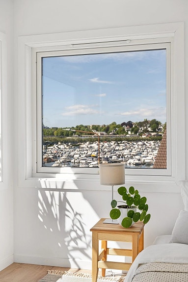 Lun atmosfære under skråtak, oppholdsrom med plass til seng/arbeidsplass. Nytt tekjøkken monteres før innflytting (ikke vist på bildene) med platetopp og kjøl/frys. Kort vei til buss/tog, sentrum, sjø og turstier.