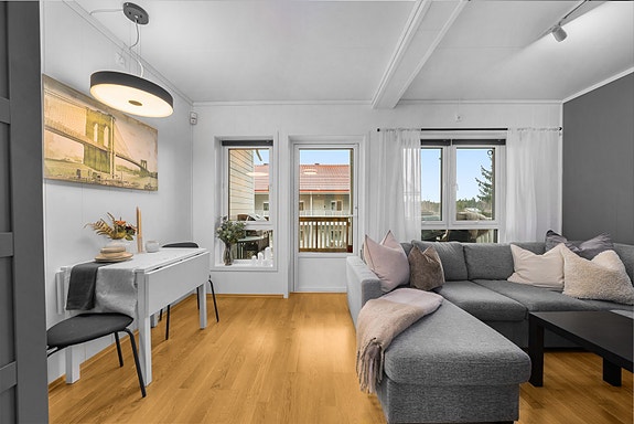 Velkommen til Stallkroken 12 A! En fin og velholdt 3-roms selveierleilighet med god intern beliggenhet i sameiet. Fotograf: Espen Edin.