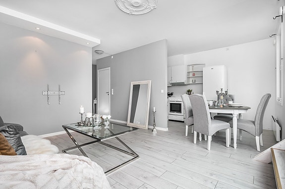 Leiligheten har egen inngang via trapp og overbygd inngangsparti, som gjør adkomsten praktisk og skjermet. Leiligheten er nyoppusset fremstår som moderne. Leiligheten har en luftig planløsning med god takhøyde. Her finner du blant annet åpen stue og kjøkkenløsning, soverom, bad med dusj og toalett samt kjøkken. Standarden er gjennomgående god, med moderne overflater og velholdte løsninger.