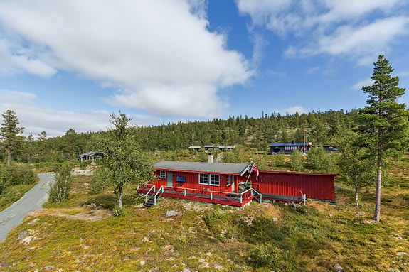 Leilighet i 2. etasje i bygning med 4 leiligheter. Tømmer, torvtak. Flatt område med rikelig med parkeringsplasser. Naturtomt, med opparbeidet gang- og parkeringsareal. Fin skigard mot skiløype og vei. Skibakke like over veien.