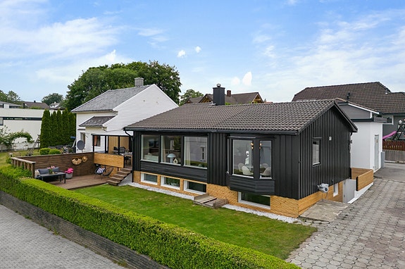 Flott hage med egen fiskedam og ypperlige solforhold!