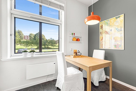 Kjøkken: Nytt, lekkert og moderne kjøkken fra 2023. Stilsikker innredning fra Epoq med glatte, lakkerte fronter og laminat benkeplate med nedsenket oppvaskkum som har ett-greps blandebatteri fra Blanco. Det er integrerte hvitevarer fra 2023 med kjøl/fryseskap, oppvaskmaskin, stekeovn og platetopp med integrert kullfilter. Varmtvannsbereder fra 2023 er plassert under kjøkkenbenk. Det er montert elektronisk vannstopper og komfyrvakt. Kjøkkenet har et tidsriktig uttrykk med en kombinasjon av overskap, benkeskap og hylle. Det er godt med lagringsplass. Fra kjøkkenet er det utgang til en østvendt balkong på ca. 3 kvm. Hyggelig balkong med plass til utemøblement og beplanting vendt mot bakgård.
